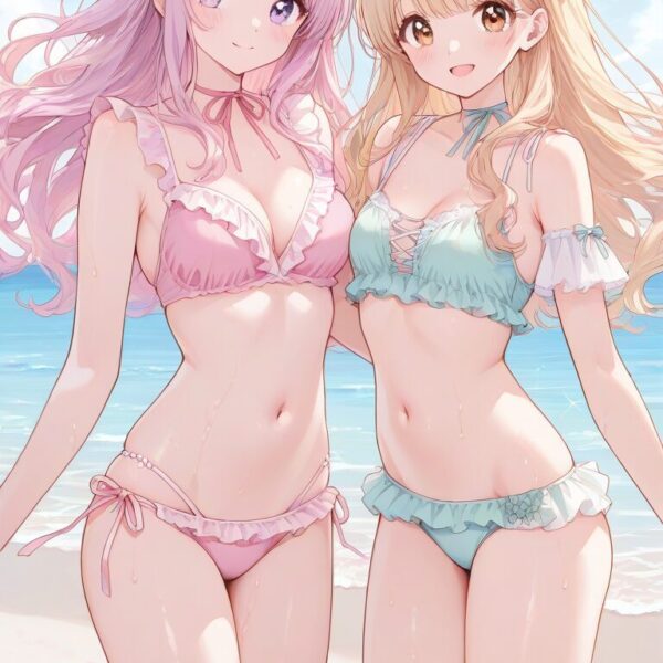 うずくまる2人の美しい15歳の日本の女子高生, あなたは彼女のピンクのパンティーを見ることができます,セーラー服の女子高生