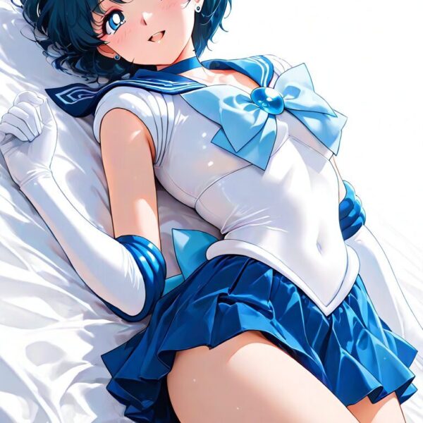 傑作, 最高品質, 女の子1人、アリス・マーガトロイド, ブロンドのミディアムヘア(赤いヘッドバンドをしている…),青い目,海と砂の背景、巨大な 、細い、青いフリルの水着、全身が見えました