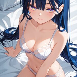 ベッドに横たわる下着姿の貧乳美少女